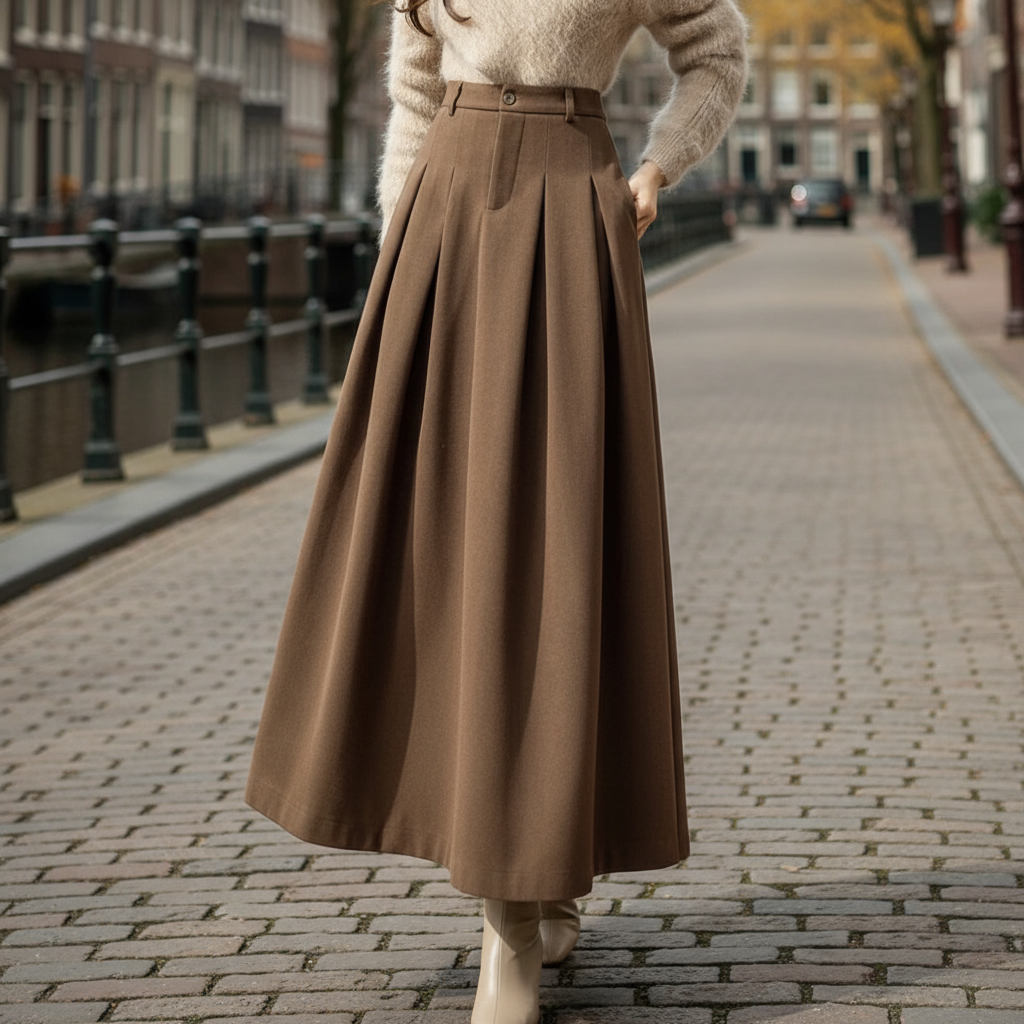 Amelie – Dames Maxi Rok | Geplooid A-Lijn Silhouet